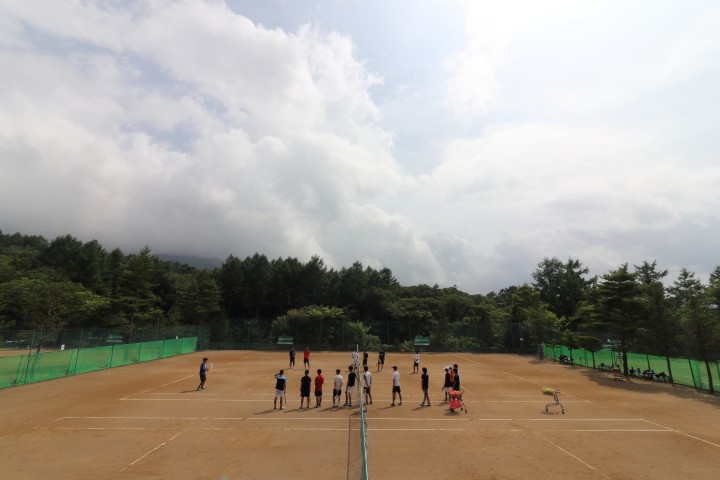 今日からお越しの高校生の皆様、今年もご利用ありがとうございます。けがや熱中症に気を付けて、頑張ってください。今日の山中湖は晴れ午後からは曇り、最高気温は午前中に29℃と猛烈な暑さになりましたが、午後からは曇って涼しい風が吹きました。午後からは雨予報でしたが、たいしたことはなく高校生は元気にテニスをしていました。写真は男子、熱い練習してます。今朝の最低は20℃。