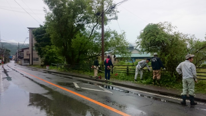 今日の山中湖は朝5時から小雨がぱらついていましたが、その後はよく晴れて最高気温は29.1℃、日差しが痛いくらいでした。今朝の最低は18℃。写真は朝6時から行われた、平野区一斉清掃です。7/14から神輿祭りが始まりますが、各組に分かれて神社境内や神輿が渡御する道をきれいに清掃しました。お祭りが大好きなので当日が楽しみです。