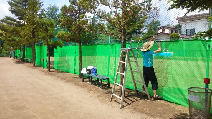 当館ではテニスコートに防風ネットを設置しています。使用する方が少しでも快適にテニスができるように少しずつ環境を整えていきたいと思います。今日の山中湖は晴れ、最高気温は28.8℃で厳しい暑さが続いています。こまめに水分補給をして熱中症には気を付けましょう。今朝の最低15℃17/07/08