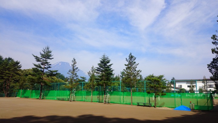 今日の山中湖は晴れ、日中は今日も日差しが強く最高気温は28.9℃、外に長くいるとかなりつらい暑さでした。夜の最低は15℃、窓を置けるととても寒く感じます。寒暖の差に気を付けたいです。写真は朝8時30分、テニスコートに設置していた防風ネットの取り付けが完了しました。
