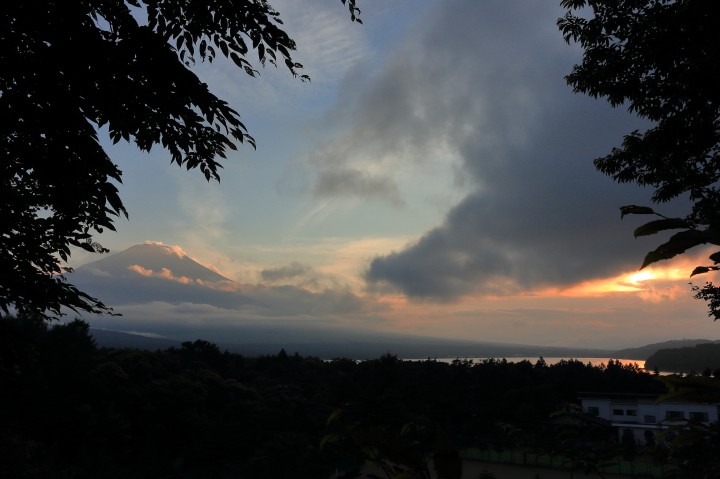 猛暑の日は夕焼けが真っ赤になる山中湖