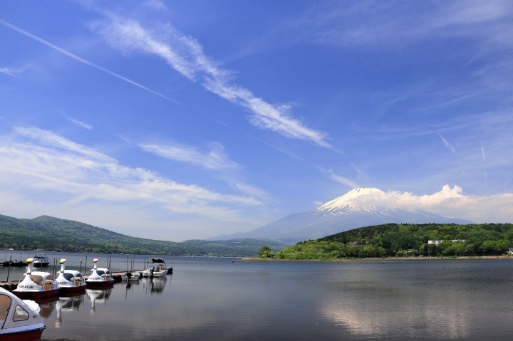 今日の山中湖は昨日に続いて真夏のような天気でした。日中の最高気温は26.9℃、最も暑い時期を上回る気温となりました。関東から東北は季節外れの猛暑となっていますので熱中症には気を付けましょう。今朝の最低は11℃。写真は朝9時に山中湖からの富士山です。山頂の雪が溶けて立体的に見えてきました。これから北斎みたいな富士山へと進んでいきます。17/05/22