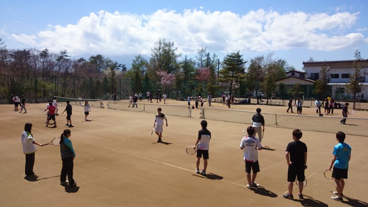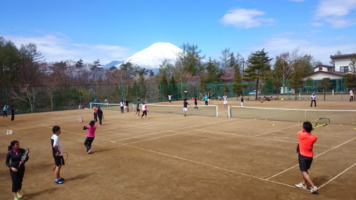 合宿2日目のアドバンテージ様は今日も大きな掛け声で練習に励んでいました。どのコートでも皆さん活発で生き生きしてます。今日の山中湖は晴れ、今朝に最低は4℃最高気温は19℃でしたが日差しが強いので夏を思わせる陽気となりました。17/05/04