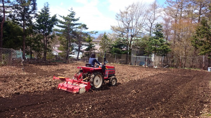 今日は裏の畑をトラクターで耕しました。この畑で採れた野菜を皆さまに美味しく食べていただけるように精魂込めて育てていきたいと思います。この場所からも富士山が見ることができ、気持ちよく作業できました。今日の山中湖は晴れ、今朝の最低は5℃、最高は15℃17/04/24