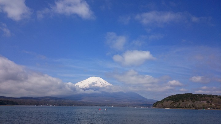 今日の山中湖は晴れ、とてものどかな1日でした。今朝の最低気温は3℃日中の最高は16℃、風もなく日差しも強くて気温以上にポカポカ陽気でした。写真は朝9時半の富士山ですが、この後雲が富士山を囲んで夏のような空になりました。17/04/25