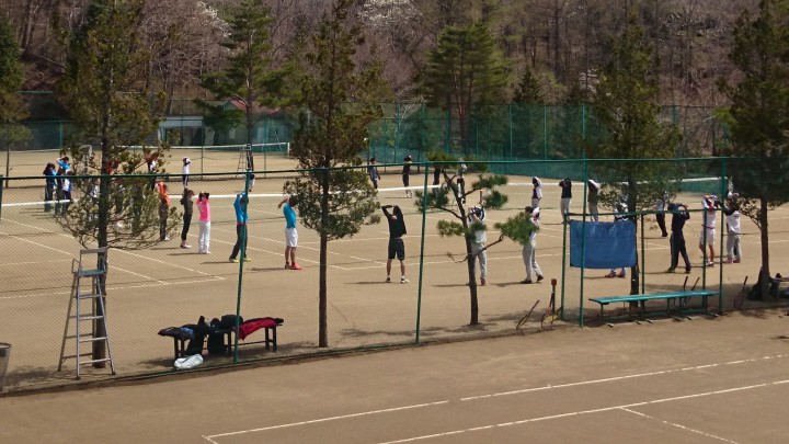 ラブフォーティー様、山中湖合宿に当館をご利用いただきありがとうございました。テニスや食事後のミーティングなど、何事も団体行動がキビキビしていた団体様でした。スタッフ一同、またのお越しをお待ちしております。気を付けてお帰り下さい。写真は昨日の練習前の体操です。今日の山中湖は晴れ、今朝の最低-1℃最高は6月上旬並の20℃17/04/30