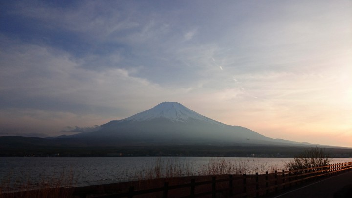 今日の山中湖は晴れ、今朝の最低は0℃日中は18℃まで気温が上がりました。日本一の富士山は朝方はかなりくっきり見えていますが、お昼を過ぎると次第に霞んでくるようになりました。写真は夕方5時45分、富士山は霞んでいますがいい雰囲気を醸し出していました。