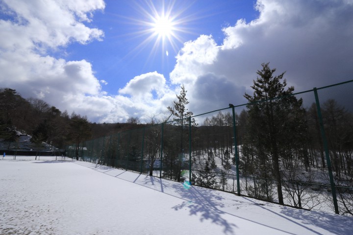 今日の山中湖は晴れのちくもり、今朝の最低気温-5℃最高5℃。テニスコートの雪が無くなり午前中は湿っていた土は夕方には乾きました。写真は午後4時、奥に見える日陰には雪が見えますが、陽が出ていれば暖かい1日でした。朝晩はまだまだ寒い山中湖ですが、確実に春になっていくのが分かります。17/02/27
