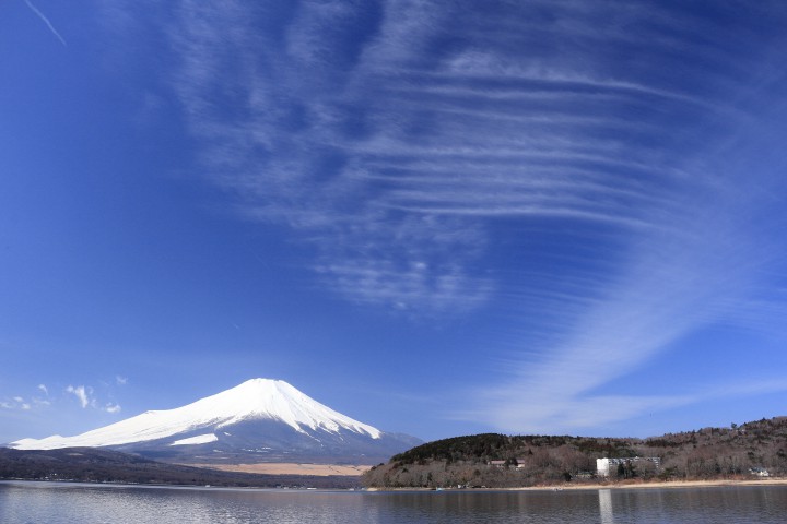 今日の山中湖は晴れ、最高気温は3月下旬並の9.8℃、今朝の最低は3月上旬並の-5℃。確実に春に向かっていますが、朝晩の寒さはまだまだ健在です。写真は朝10時の山中湖。真冬のようなくっきり感はありませんでしたが、その雄大さは損なわれていません。雲の形も面白く気持ちのいい時間を過ごせました。17/03/05