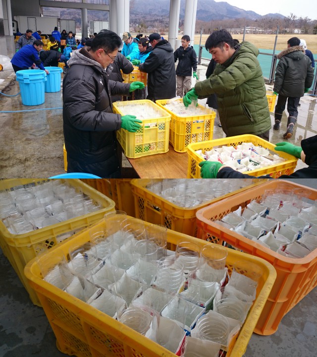 2月11日(土)に開催される山中湖アイスキャンドルフェスティバル。今日はそのアイスキャンドルを作りました。関係者50人ほどで作った数は3500個。当日は綺麗に点灯できるように丁寧に作りました。今日の山中湖は朝方晴れ、このとき富士山には大きな傘雲がかかっていて、お昼前から雨が降り出しました。今朝の最低気温-6℃、最高5℃【アイスキャンドルフェスティバル】