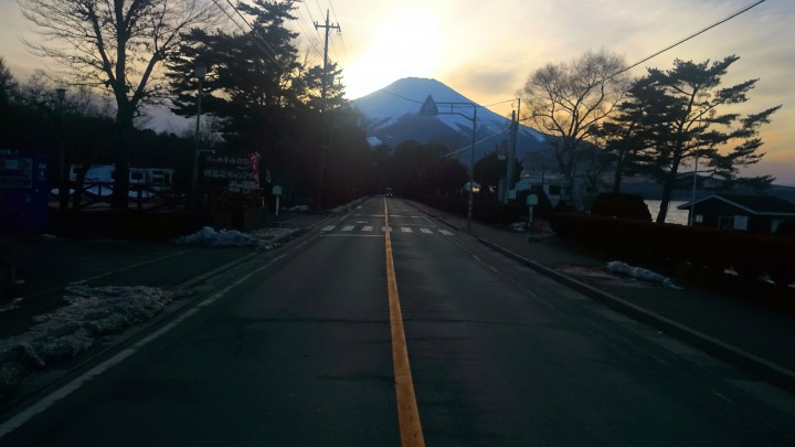 今日の山中湖は晴れ、ここずっと雪が降っていないため道路はご覧の通り雪がありません。日陰や除雪した雪はまだ残っていますが、この時期に何も雪がないのも珍しいです。おかげで車は走りやすく、泥だらけにならずにすんでいます。写真は日が沈んだ午後4時40分の国道413号線です。日中は3℃までしか気温が上がらず、日陰は特に寒かった1日でした。今朝の最低-3℃。17/02/07