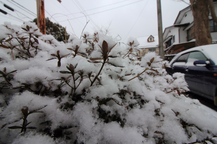 朝は快晴でしたが午後から雪が降り出しました。積雪は10cm