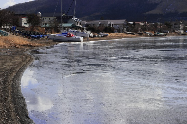 山中湖は今朝-10℃まで気温が下がり、再び湖水に薄氷が張りました。日中の最高気温は5℃。最近比較的暖かかったので、山中湖に薄氷があったのでちょっとビックリしました。日光が暖かいですので夕方には氷は溶けているかも知れません。今日の山中湖は晴れ、夜に小雨がぽつぽつして道路が濡れていました。明日は雪の予報ですが積雪は少なそうです。写真は11時の山中湖です。