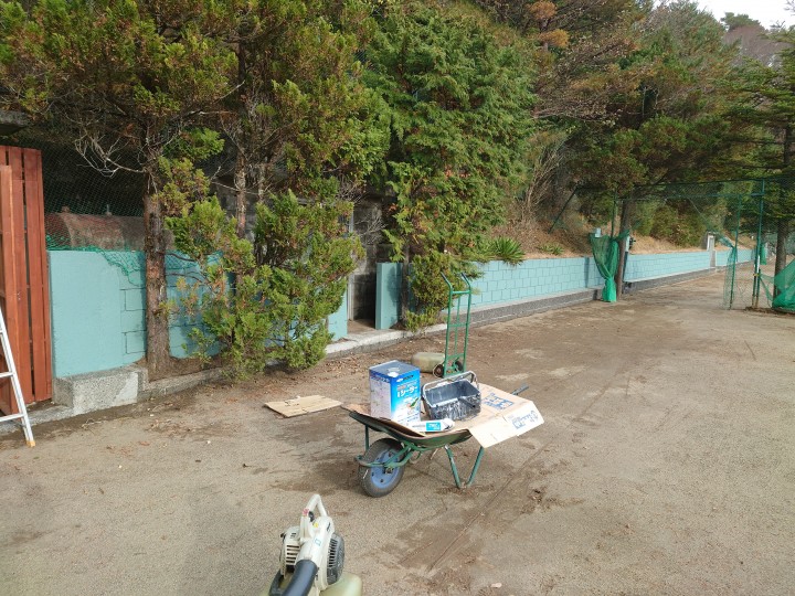 今日はテニスコートの壁下側に2回目の塗装しました。かなり色が濃くなりましたね。この後は冬支度もあるので、時間と天候を見ながら残りの部分を塗装したいと思います。25/11/21