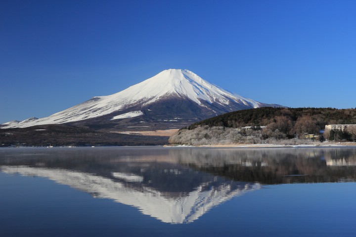 今日も山中湖は朝から良く晴れています。今朝は「けあらし」が発生し、長池地区サイクリングロードには多くのカメラマンが幻想的な朝日を撮っていました。時間に余裕が無かったため、そこに行って写真を撮りたかったのですが、残念ながらまたの機会におあずけです。写真は朝8時、平野地区から撮った富士山です。綺麗な逆さ富士が撮れました。今朝の最低気温は-12℃、最高4℃。