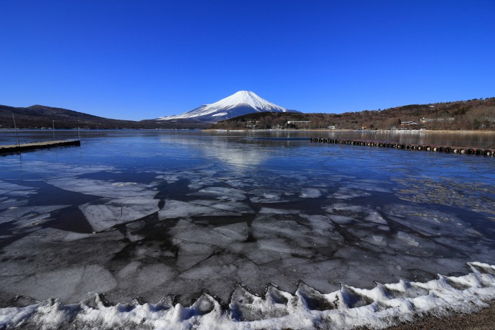今日の山中湖は晴れ、強い寒波の影響で今朝は今季最低の-16.2℃まで下がりました。日中の最高気温は-1.3℃で今日も真冬日となり、山中湖の氷は一気に広がりました。風も強く富士山を見ているだけで、寒すぎて涙が出来てます。日本列島に訪れているこの最強寒気は今日で終わりらしく、明日は氷点下一桁に納まるらしいです。写真は平野の浜から撮った写真です。ここ2日で一気に凍りました。※氷上には上れません