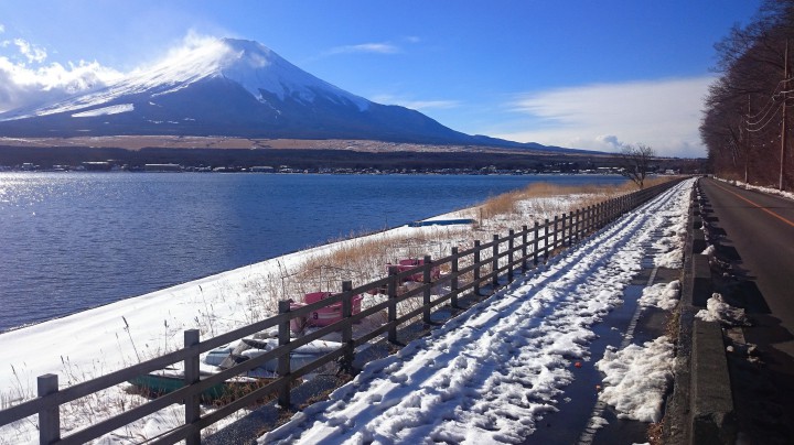 今日の山中湖は晴れ、今朝の最低は-7℃、夜は更に冷え込んでいて翌朝は-10℃に達するようです。日中の最高気温は4℃。写真は長池地区サイクリングロードから富士山を撮りました。道路は除雪が完了しているため雪が無く乾いていますが、サイクリングロードにはまだまだ雪があります。山中湖はこれからは積雪のシーズンを迎えますので、春までサイクリングは出来ないかも知れません。17/01/11