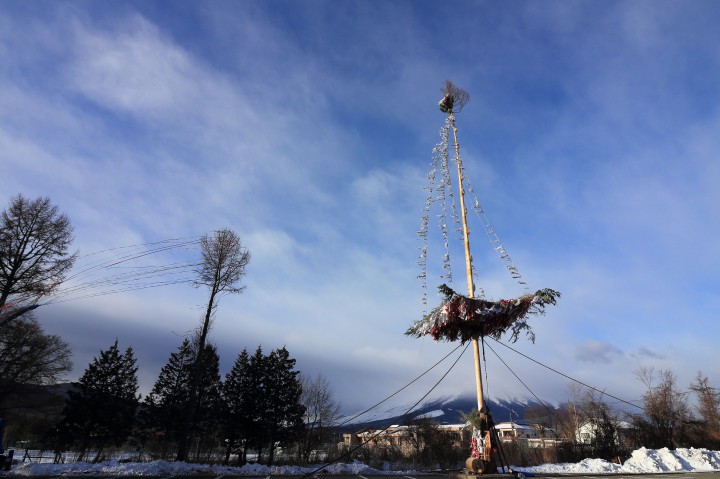 今日は山中湖各地で恒例の道祖神祭り御神木建てが執り行われました。とても寒かったのですが、大人たちが見守る中、ちびっ子たちが楽しそうに大きな声で引っ張っている姿はとても微笑ましいく、1年間頑張れる元気をもらいまいした。写真は去年の平野地区のものですが、今年も区民総出でとても盛り上がりました。今日の山中湖は晴れ、今朝の最低気温-10℃、日中の最高気温-1.7℃の真冬日でした。17/01/14