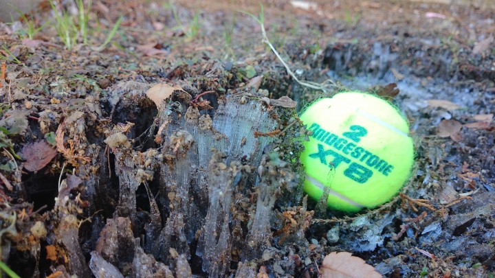 大きな霜柱、テニスボールくらいありました