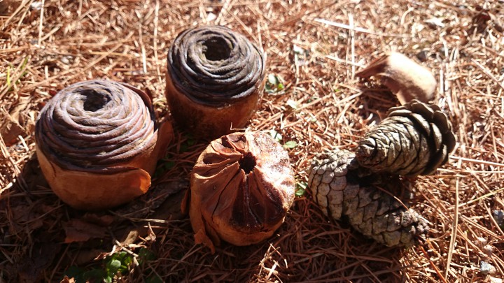 今日の山中湖は晴れ、今朝の最低気温は-10.7℃で今期最低となりました。日中の最高は6℃。山中湖は本格的な寒さでした。今日、林の中で不思議なものを見つけました。松の下にモンブランような木の実?を見つけました。松ぼっくりではなさそうです。なんでしょう?調べたらヒマラヤスギの落っこちた球果で“木彫りのバラ”「シダーローズ」らしいです。これから鱗片が剥がれ落ちるようです。16/12/17