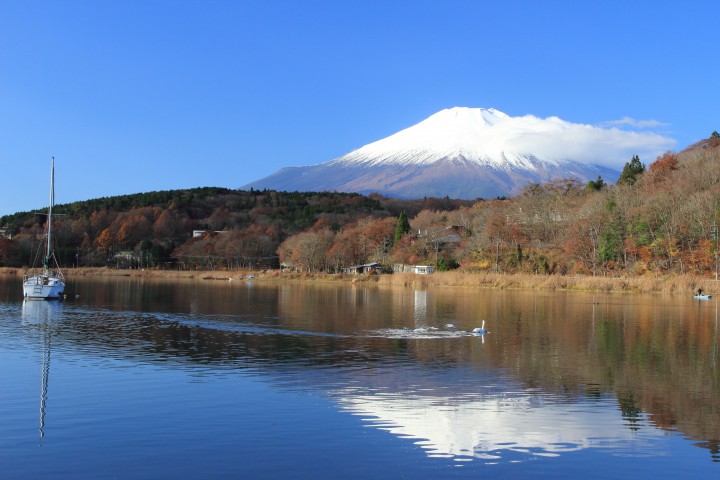 朝からポカポカ陽気の山中湖は日中19℃まで気温が上がり、11月後半とは思えない暖かさでした。写真は朝8時、平野の浜から富士山を撮りました。山中湖には白鳥が住み着いていて探せば必ず湖畔で見つけることができます。このとき、足下には白鳥が日向ぼっこをしていまいした。白鳥は近くで見るとかなり大きいです。最低7℃