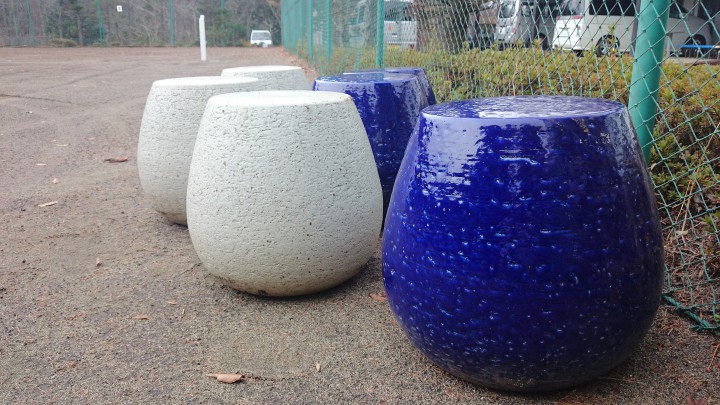 天気予報によると今夜から季節外れの大雪が関東全域で降るらしく、甲信では予想20cm、東京で雪が降れば11月では54年ぶりとのことです。ニュースを聞いてすぐに車のタイヤをスタッドレスに換え、除雪用のタイヤブルにはチェーンを取り付けました。写真はコート脇の販売機に設置していた丸い陶器のベンチです。除雪の時じゃまになるのでテニスコートへ移しました。今日は小雨、最高気温9℃最低2℃