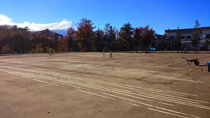 昨夜7時から降り出した雨は午前2時には止みましたが、朝方はとても寒く小さなみぞれがぱらつきました。その後、午前10時からは良く晴れ夕方まで富士山が綺麗でした。当館では本日、所有しているテニスコートのラインテープを取り外しました。これから少しずつ冬支度です。富士山も夜に雪が降ったようでかなり白くなってきました。今日のダイヤモンド富士は長池で15:41です。16/11/09
