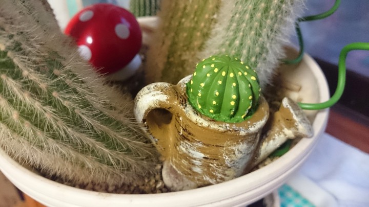 今日の山中湖はくもり、夕方から霧雨、最高気温11.9℃最低7℃。昨日に続いて今日も寒い1日でした。太陽が出ていなかったので、日中は11月中旬並の気温でした。こちらに来られる方は暖かい上着を用意してお越しください。写真はサボテンにおいた偽物のサボテンです。かわいかったので100円均一で購入しました。癒されます。16/10/13