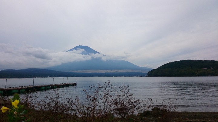 今日の山中湖はくもり、10時から3時は晴れ間が見えましたがその後はくもり、最高気温14℃。夜には2.3℃まで気温が下がりました。写真は12時30分の山中湖から見た富士山です。16/10/14