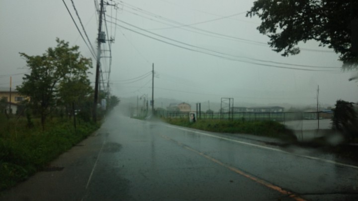 台風16号接近中、一日中どしゃ降りです