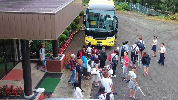 15日から宿泊中のパーシモン様、3泊夏合宿に当館をご利用いただきありがとうございました。とても仲がよい団体様で、施設も丁寧に使用してくれました。スタッフ一同、またのお越しをお待ちしております。気を付けてお帰り下さい。今日の山中湖は午前8時から雨が降り始め、その後はすごい暴風雨になり午後5時まで嵐でした。総雨量は20mm。夜からはまた雨。最高気温21℃最低18℃16/09/18