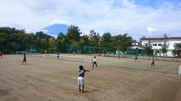 宿泊中のパーシモン様は昨晩からOBの方々と合流し、今日はみんなでダブルスの試合を行いました。どのコートも活気で溢れ、とても楽しそうでした。テニス大好きな団体様です。富士山を見ながら時間いっぱいテニスをして欲しいと思います。今日の山中湖は晴れ夕方からくもり、最高気温26℃最低14℃16/09/17