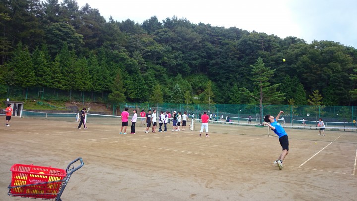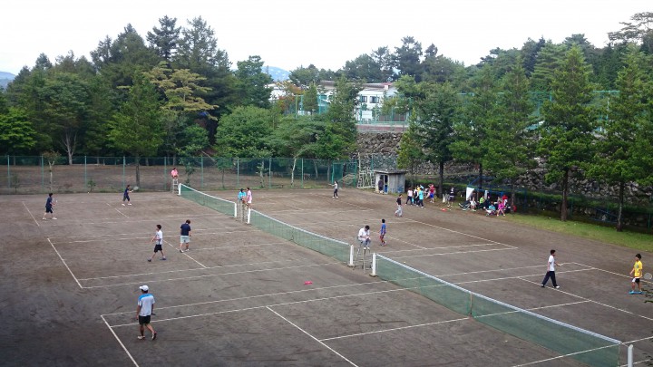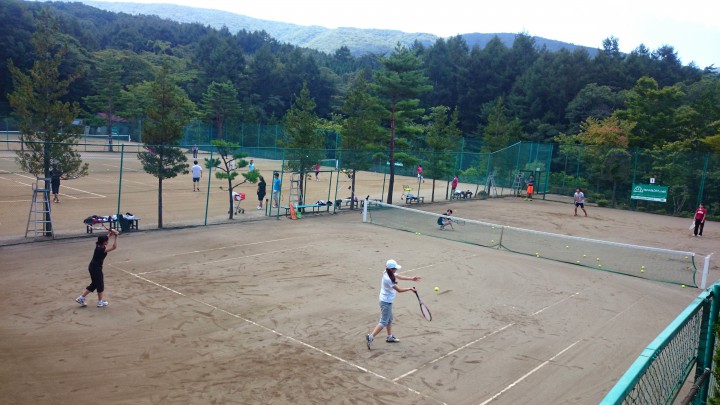 今日の山中湖は晴れ、最高気温27℃最低14℃。宿泊中のロランギャロ様は今日で3日目、少しずつ人数が増えていき、どのコートも更に盛り上がって練習に熱が入ります。皆さん楽しんでテニスをしているので見ていて楽しいです。今夜は毎年恒例の肝試し、楽しい思い出を作って下さいね。16/09/02