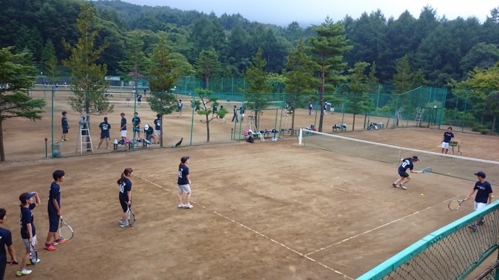 今日の山中湖は朝から快晴、最高気温30.3℃と久しぶりに真夏日になりました。宿泊中のOTC様は明日が最終日、今日もみんなで元気に各コートに分かれて球出し練習などしていました。練習後の丁寧なブラシ掛けはとても助かっています。午後からはくもりで夜雨がぱらつきました。16/08/17