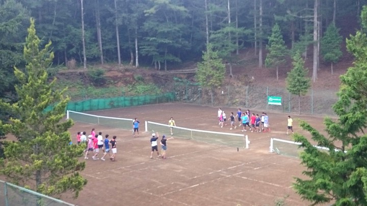 宿泊中のOTC様は数チームに分かれて対抗戦を行いました。どのチームも試合に集中していて応援にも熱が入っていました。各地ではまだまだ猛暑が続いているようですがここ山中湖は気温以上に涼しいですので、気持ちよくテニスができると思います。頑張ってください。今日の山中湖は晴れ時々くもり、午後3時過ぎからはくもりとなり夜10時から小雨となりました。最高気温27℃最低17℃16/08/13