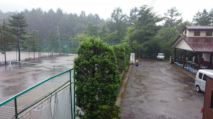 台風の影響で関東甲信越は大雨状態です。ここ山中湖は朝8時から午後6時まで断続的に雨、12時から14時までは激しい降りでした。総雨量31mm。宿泊中のフェニックス様は、様子を見ながら3時30分からテニスをやり始めましたが、10分後には再び雨が降りテニスは中止となりました。明日はテニスができそうな予報です。最高気温23℃最低19℃16/08/20