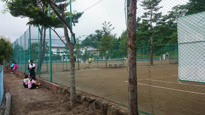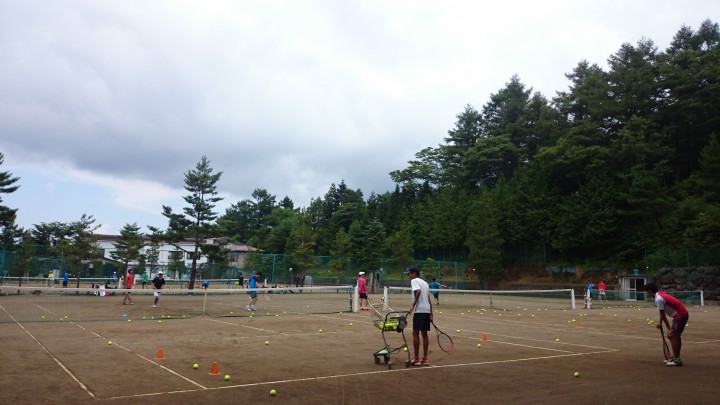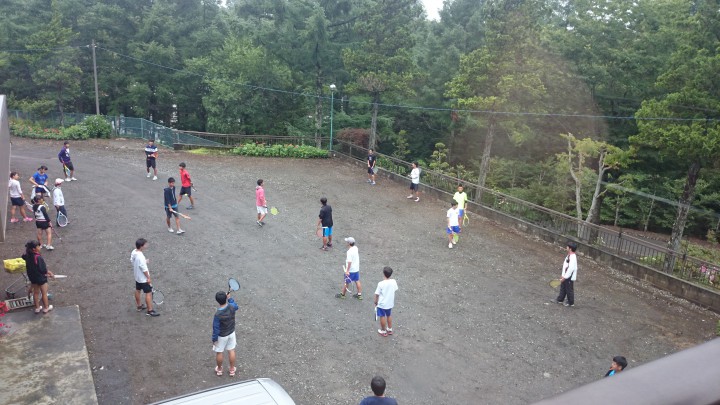 今日の山中湖は朝からどんよりしていて11時には雨となり午後4時までに総雨量5mmでした。宿泊中の高校生は雨のため残念ながらテニスは中止して室内でミーティングとなりました。明日はいよいよ合宿最終日、今夜の肝試しは楽しんでください。写真は朝9時、結構どんよりしてる中での練習でした。最高気温19度最低17度、夜10時から小雨となりました。