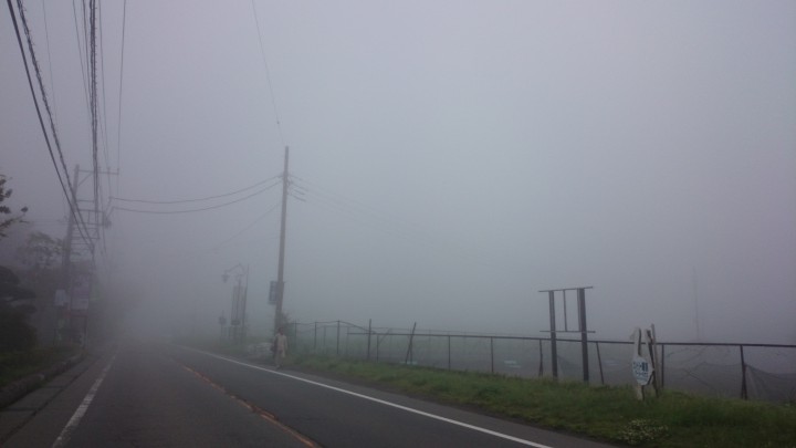 雨が上がると濃霧となりました。運転には気を付けて下さい。