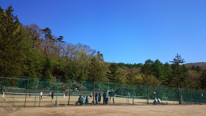 今日の山中湖は晴れのち曇り、一日中ものすごい強風でした。コート上でも風が吹き荒れる中、宿泊中のドルフィンズ様は元気にテニスを頑張っていました。とても仲がいい団体さまです。最高気温23℃最低10℃16/05/03