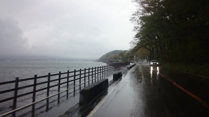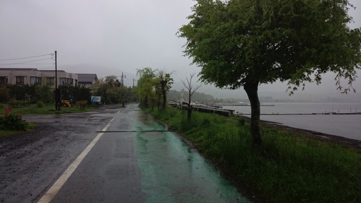 今日の山中湖は昨日からの雨が降り続き昼前からは暴風雨となりました。嵐は2時には止み総雨量は74mm。その後は曇り時々晴れ、最高気温20℃最低13℃。写真は朝9時の平野サイクリングロードです。まだ暴風雨になる前でしたがかなり暗かったです。16/05/11