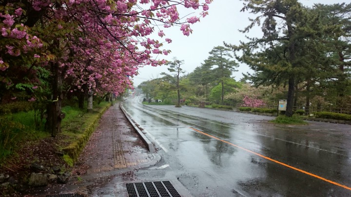 朝からどんより空の山中湖、午後になると雨がぽつぽつと降り出してきました。ニュースによるとしばらく天気が悪いとのことでした。写真は午後1時の国道413号線です。遅咲きの八重桜がどんよりしている雨の中で、際だって綺麗でした。今日の山中湖は曇りのち午後から雨、最高気温16℃最低7℃。16/05/09