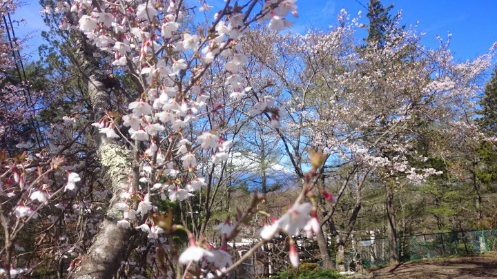 共立テニスロッヂの庭の桜がとても綺麗に咲いています。暖冬のため例年よりも1週間くらい早く満開したのを感じます。今日の山中湖は午前晴れ時々曇り、午後曇りで夜小雨。最高気温18℃最低10℃