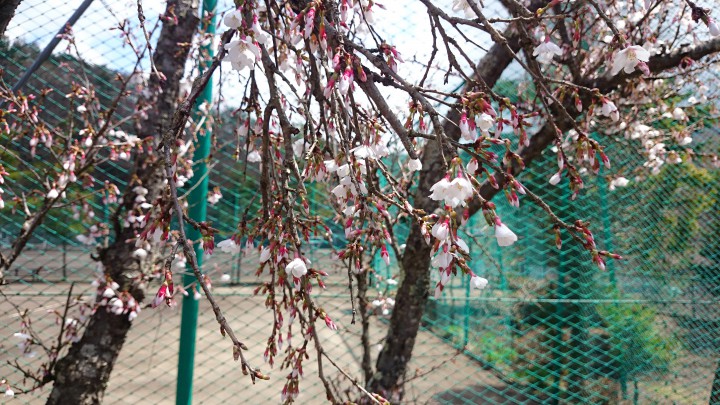 今日の山中湖は晴れ時々曇り、最高気温14℃最低3℃。気温はそれほど上がりませんでしたが、太陽を浴びているとポカポカして家の中にいるよりも暖かく、テニスコート脇にある桜も咲き始めたので春を感じた1日でした。山中湖周辺の桜はいつの間にか満開のようで、山中湖畔よりも高地にある当館の桜もまもなく満開を迎えます。