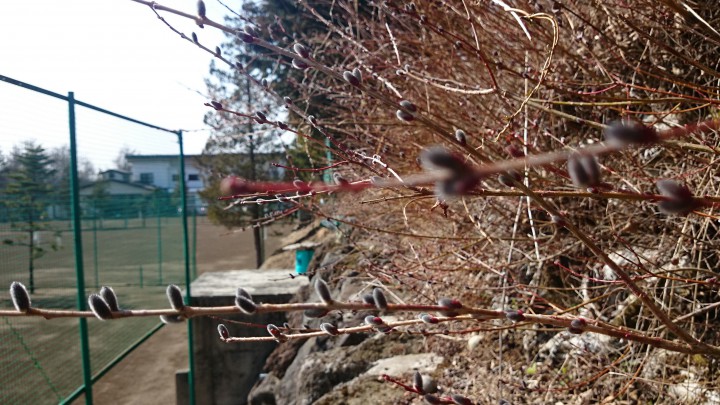 今日の山中湖は一日中雪がぱらつく1日でした。午後2時頃に一時晴れ間が見えましたが、その後も雪がぱらつき最高気温は晴れたときに5℃、午前中は0℃午後3℃で寒い1日でした。写真は太陽が出たときに撮ったネコヤナギです。ネコヤナギは春の訪れを告げる植物とされています。テニスコートの掃除中に見付けました。小さくてフサフサしてかわいかったです。寒いですがもう春ですね。16/03/24
