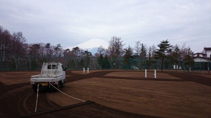 2日前にはテニスコートに雪が積もっていましたが、昨日コートを乾かし今日はトラクターで?1〜7コートの土を撹拌しました。この作業は手間が掛かりますが、表面はきめ細かくなり炎天下の夏場時期ではとてもタフなコートになります。完成はまだ先ですが使用する皆さまに満足して頂けるよう心がけて丁寧に作りたいと思います。今日の山中湖は晴れ、最低気温-1℃最高14℃。16/03/31