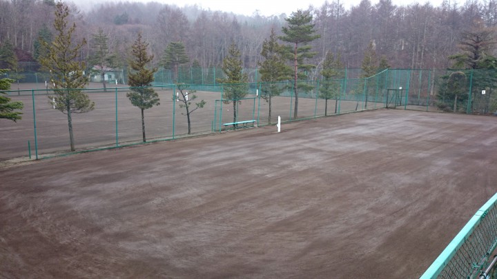 朝6時まで降っていた雪によりテニスコートは真っ白になりました。写真は朝10時。積雪は3cmでしたが10時から3時間ほど晴れ間が見え、2時には雪は全て溶けました。これからテニスコート作りを行うわけですが、乾いた状態の土をトラクターで撹拌しますので、しばらく晴れが続いて欲しいです。最低気温-3℃最高6℃。