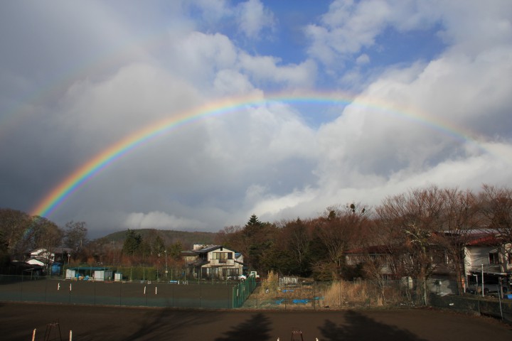 昨日の夜から小雨が続いていた山中湖、午前中は本降りとなりましたが午後になると晴れ間が見えだし見事な虹が現れました。日中の最高気温は18.8℃の春の陽気で窓を開けて走っている車が結構いました。最低7℃