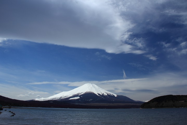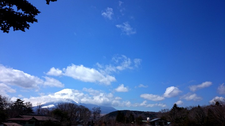 朝から快晴の山中湖、写真の12時になると強風が出てきて大きな雲が富士山に向かっていきました。早い雲でしたのであっという間に空の風景が変わっていき見ていて飽きませんでした。同じ富士山の景色でも雲一つで違った印象に感じます。今日の山中湖は晴れ時々曇り、夜から雨、今朝の最低-3℃最高14℃