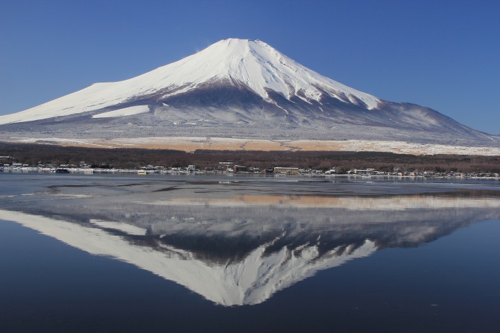 朝からすごい青空の山中湖、早朝-10℃でしたので空気がすごく澄んでいてとても綺麗な富士山が撮れました。水面に映った富士山を見ていると心が落ち着きます。現在の富士山は麓まで雪で真っ白、何回見ても富士山はいいですね。