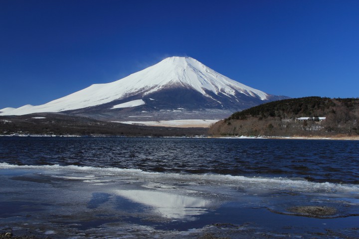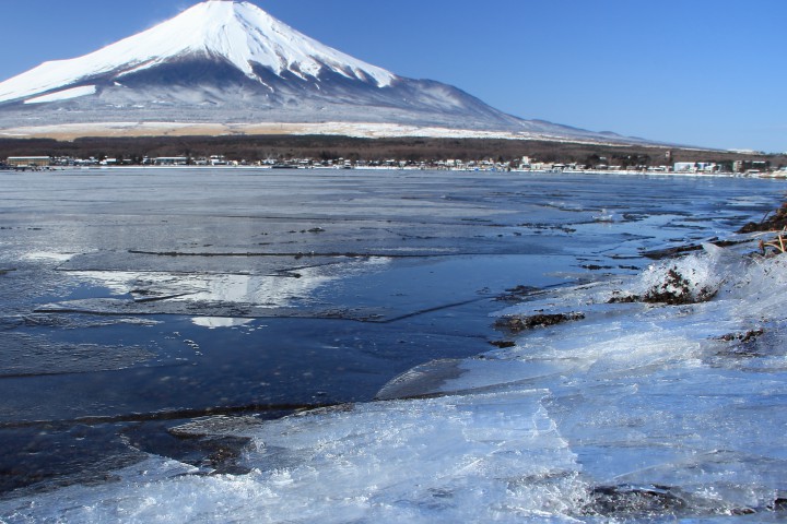 朝からすごい青空の山中湖、早朝-10℃でしたので空気がすごく澄んでいてとても綺麗な富士山が撮れました。水面に映った富士山を見ていると心が落ち着きます。現在の富士山は麓まで雪で真っ白、何回見ても富士山はいいですね。今日の山中湖は晴れ、最低気温-10℃最高6℃